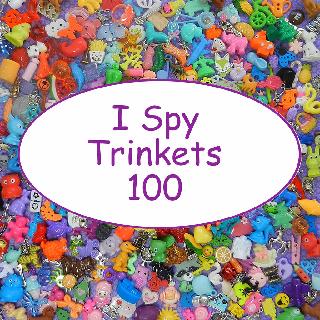 I SPY TRINKETS (100) - Trinkets for I Spy Bags and Bottles-sensory bins-teaching-tiny toys- No Duplicates