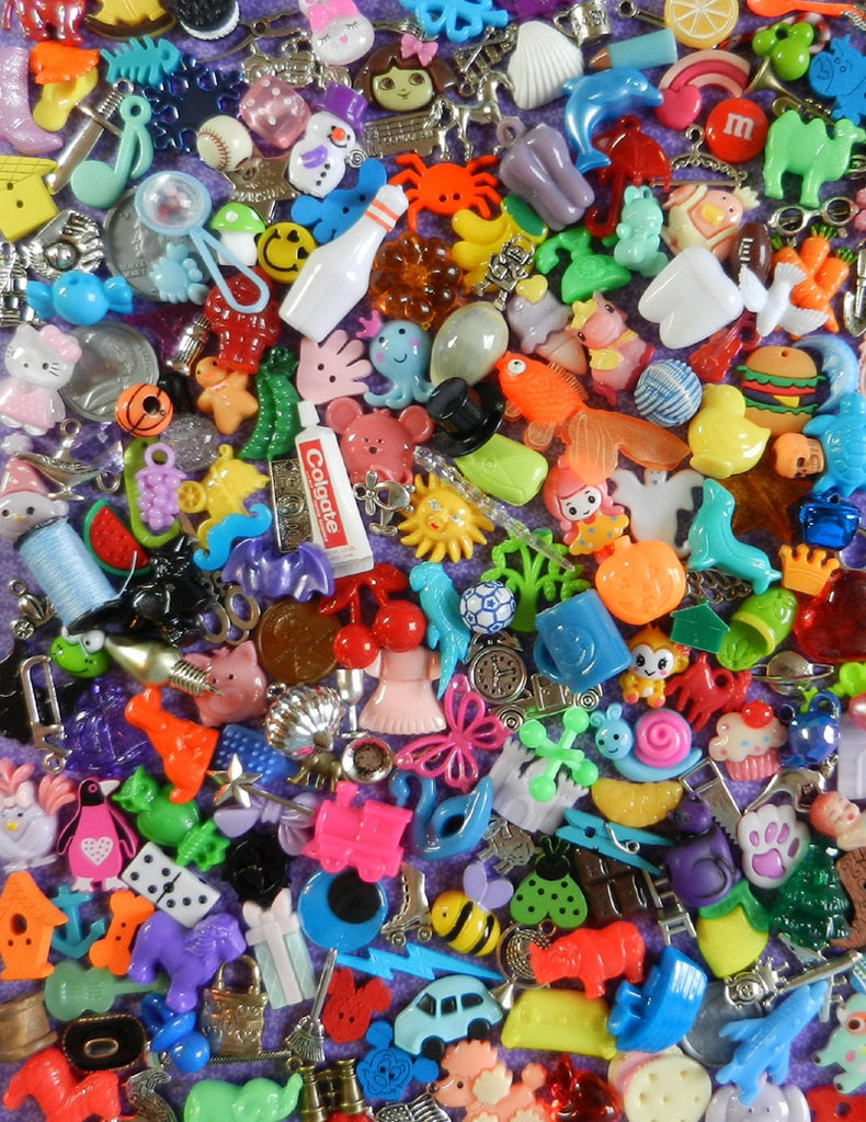 *** FUN, COLORFUL, AND EASILY RECOGNIZABLE! TOP QUALITY TRINKETS made of acrylic, plastic, resin, PVC, wood, or metal. We DO NOT add ordinary round sewing buttons or beads as fillers. NO DUPLICATES!
